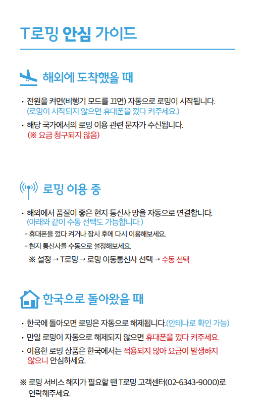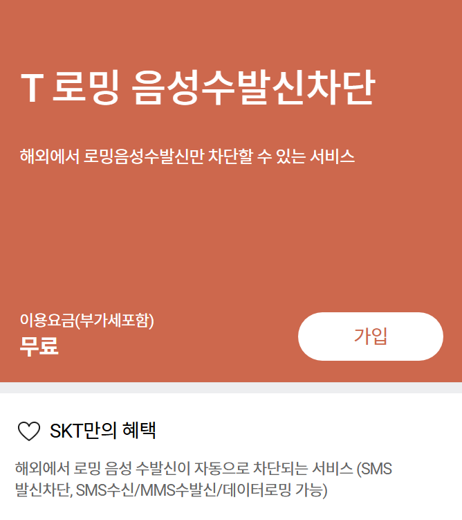 2️⃣ 일반 로밍 통화 요금 방지 → "T 로밍 음성수발신차단" 부가서비스 가입