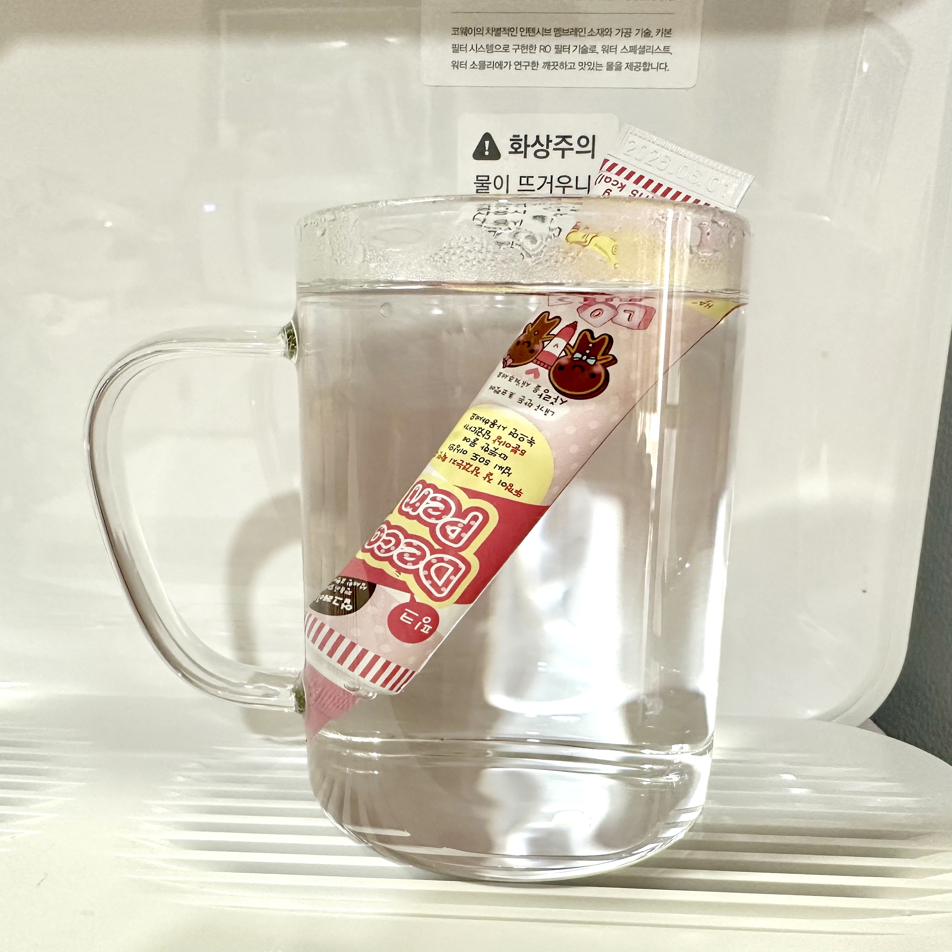 50℃ 이상의 따뜻한 물에 5분 이상 담가 녹입니다.