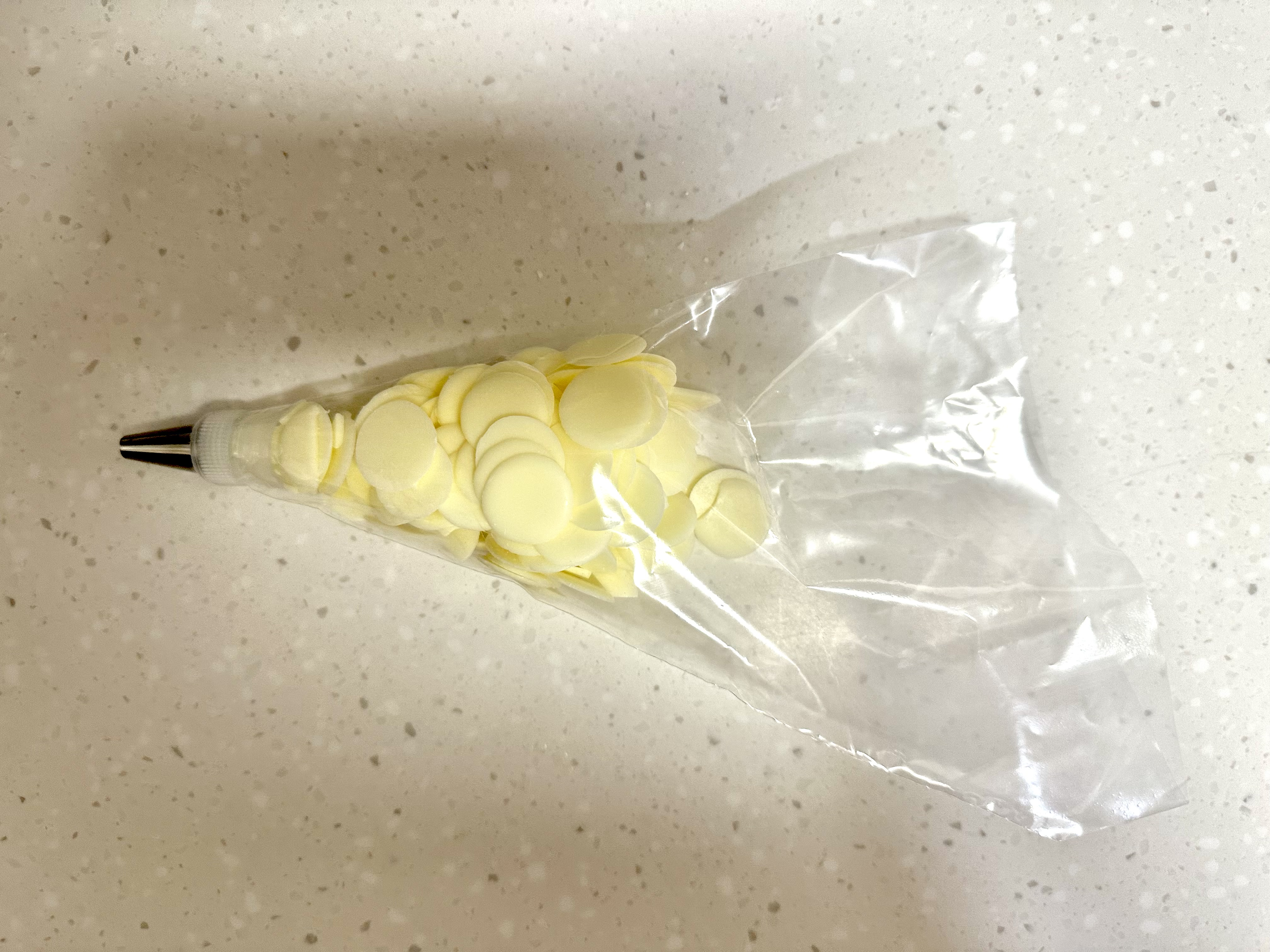 코팅 초콜릿(100g)이 잘 녹을 수 있도록 짤주머니에 담아주세요.
