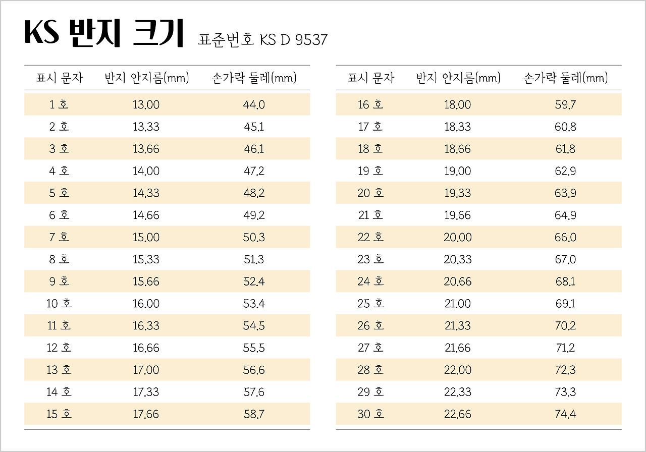 그 길이를 측정해 KS 반지 크기와 비교하면 됩니다.