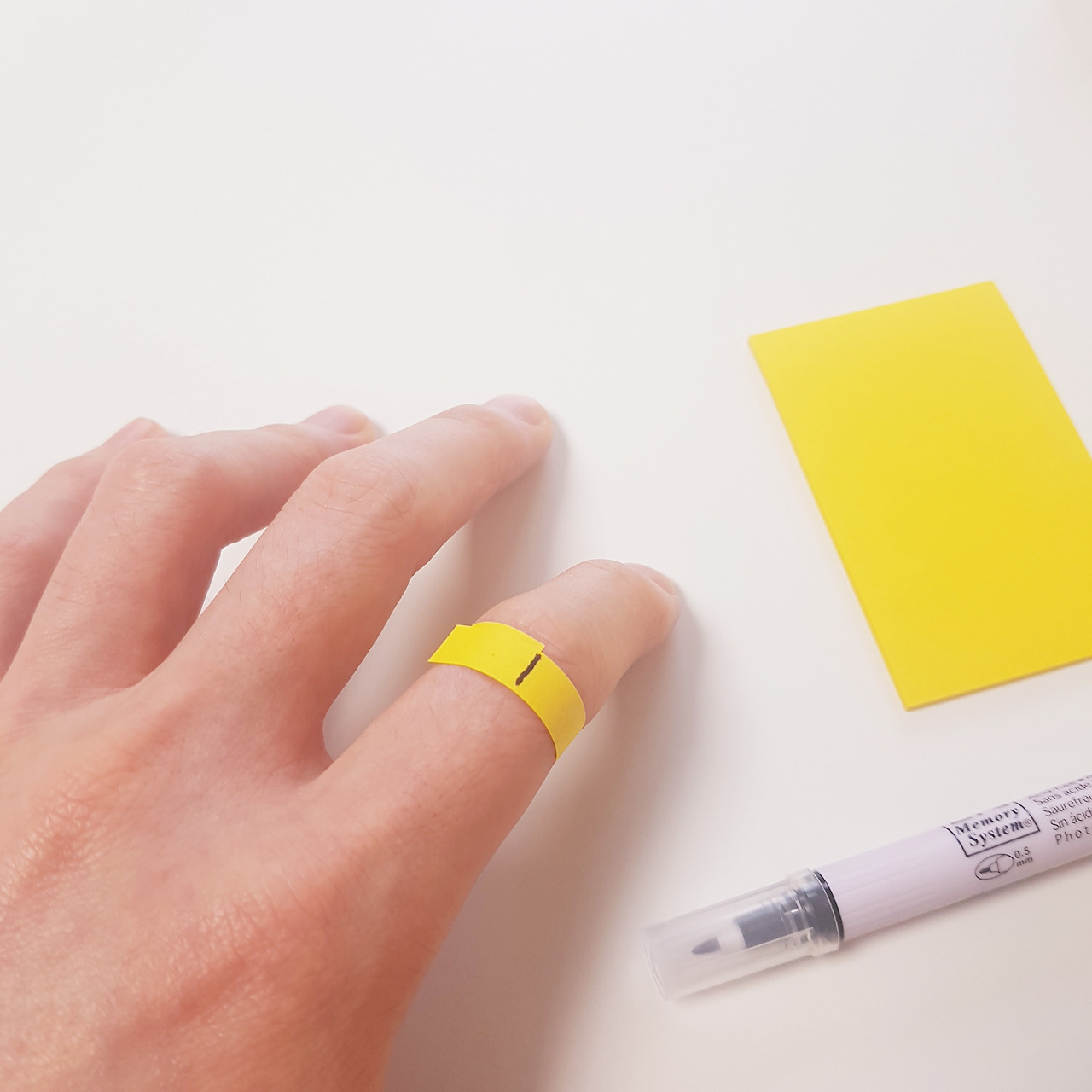 종이나 실, 포스트잇 등을 이용해 손가락을 감싼 뒤 겹친 부분을 표시하고,