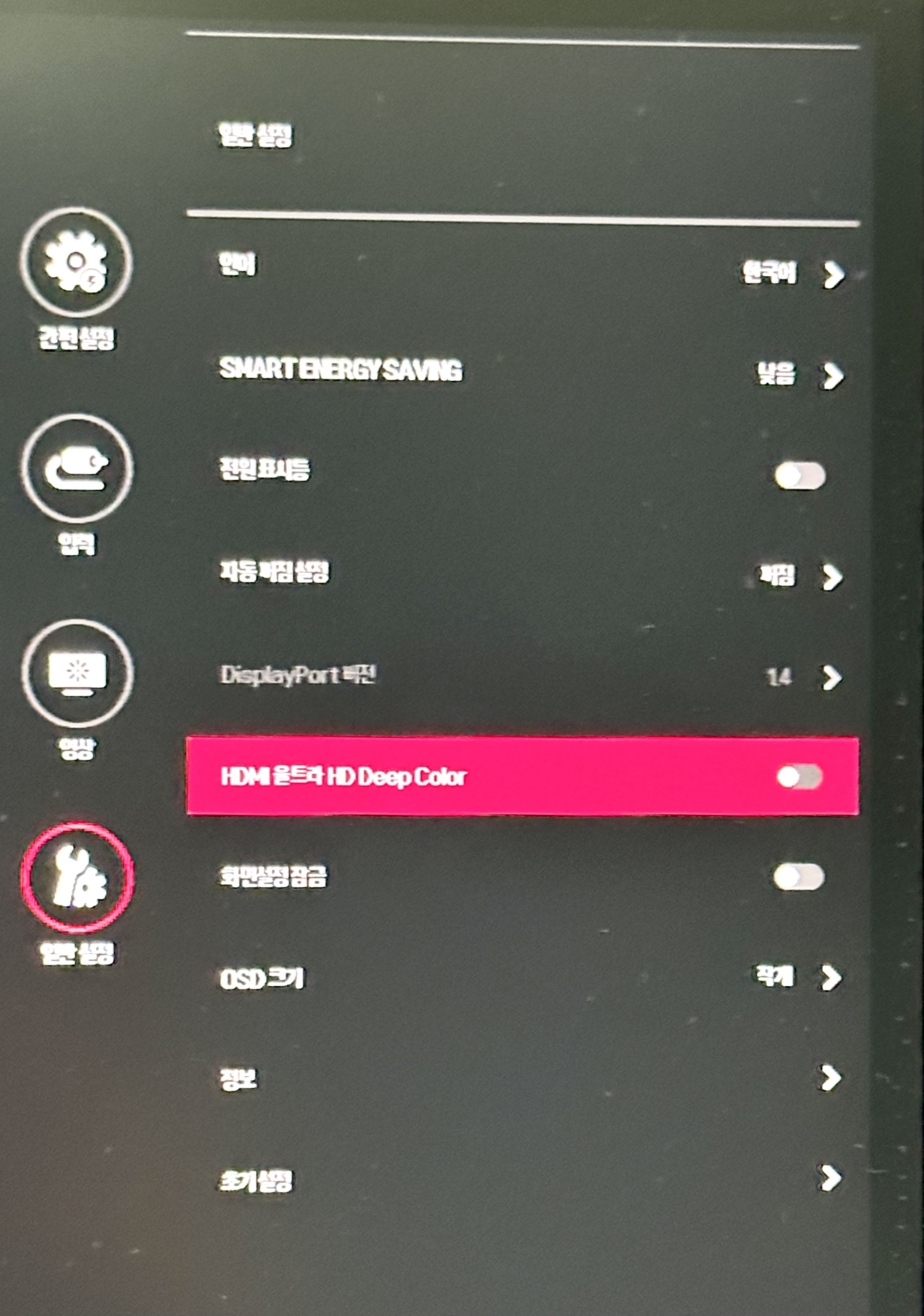 5. 일반 설정 ▶ HDMI 울트라 HD Deep Color 설정 해제
