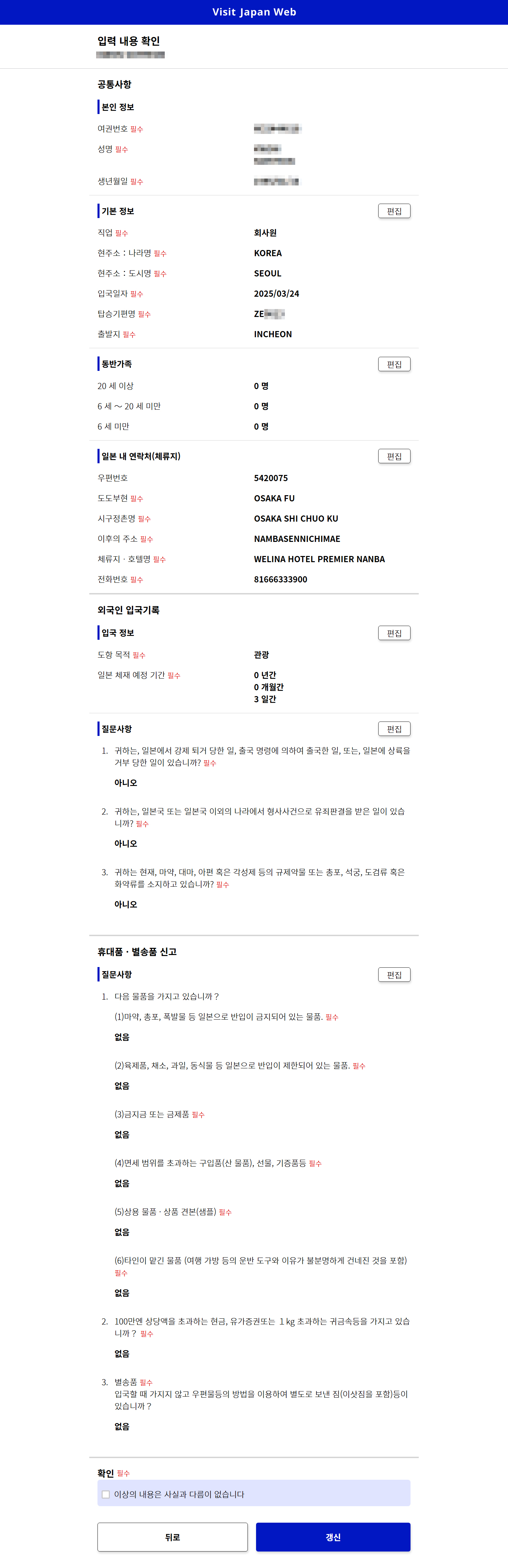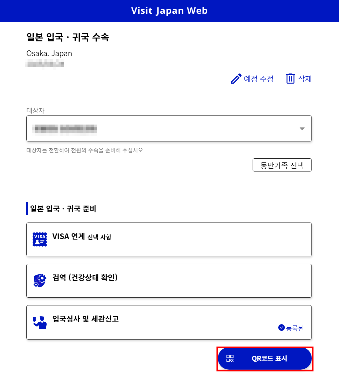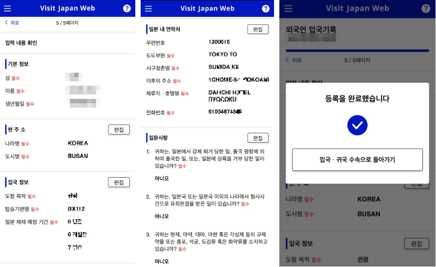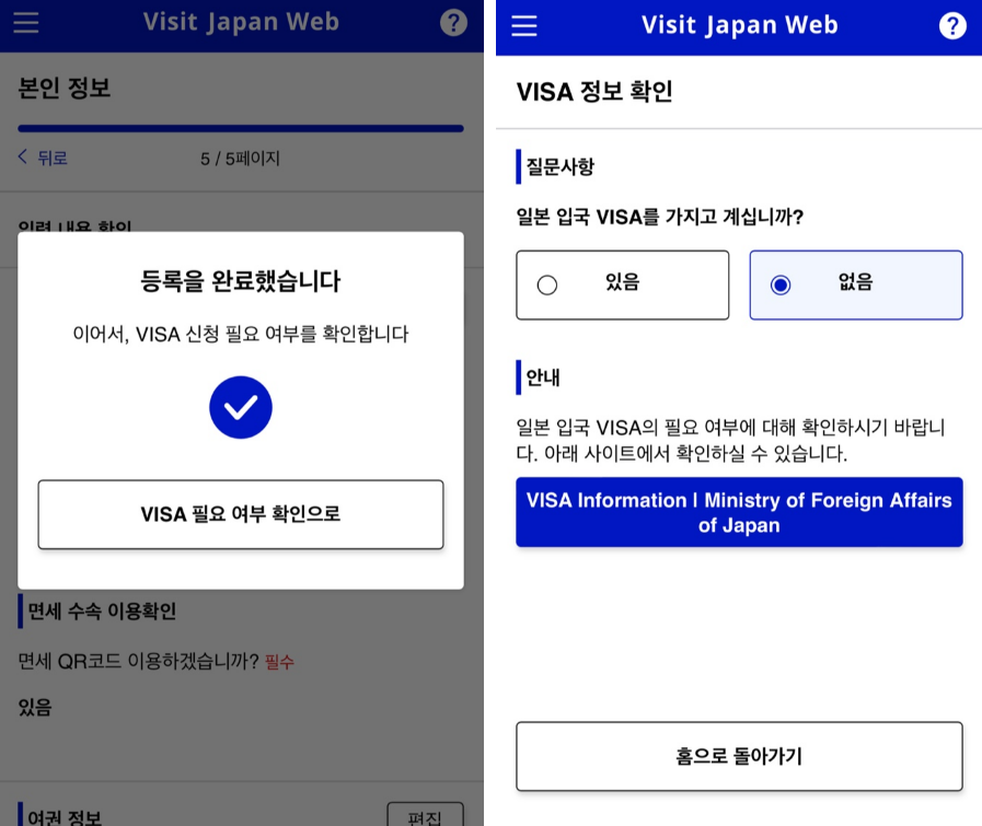 📌 Visit Japan Web 입국심사·세관신고 입력 확인