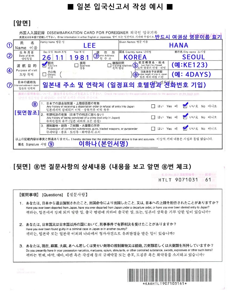 기존 일본 입국 심사는 기내에서 종이 입국 신고서를 작성한 후,