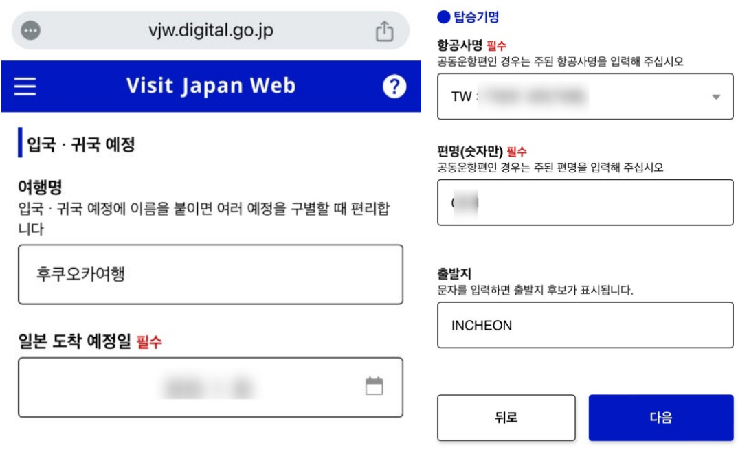 여행명은 자유롭게 입력할 수 있으며, 일본 도착 예정일은 날짜를 입력해야 합니다.