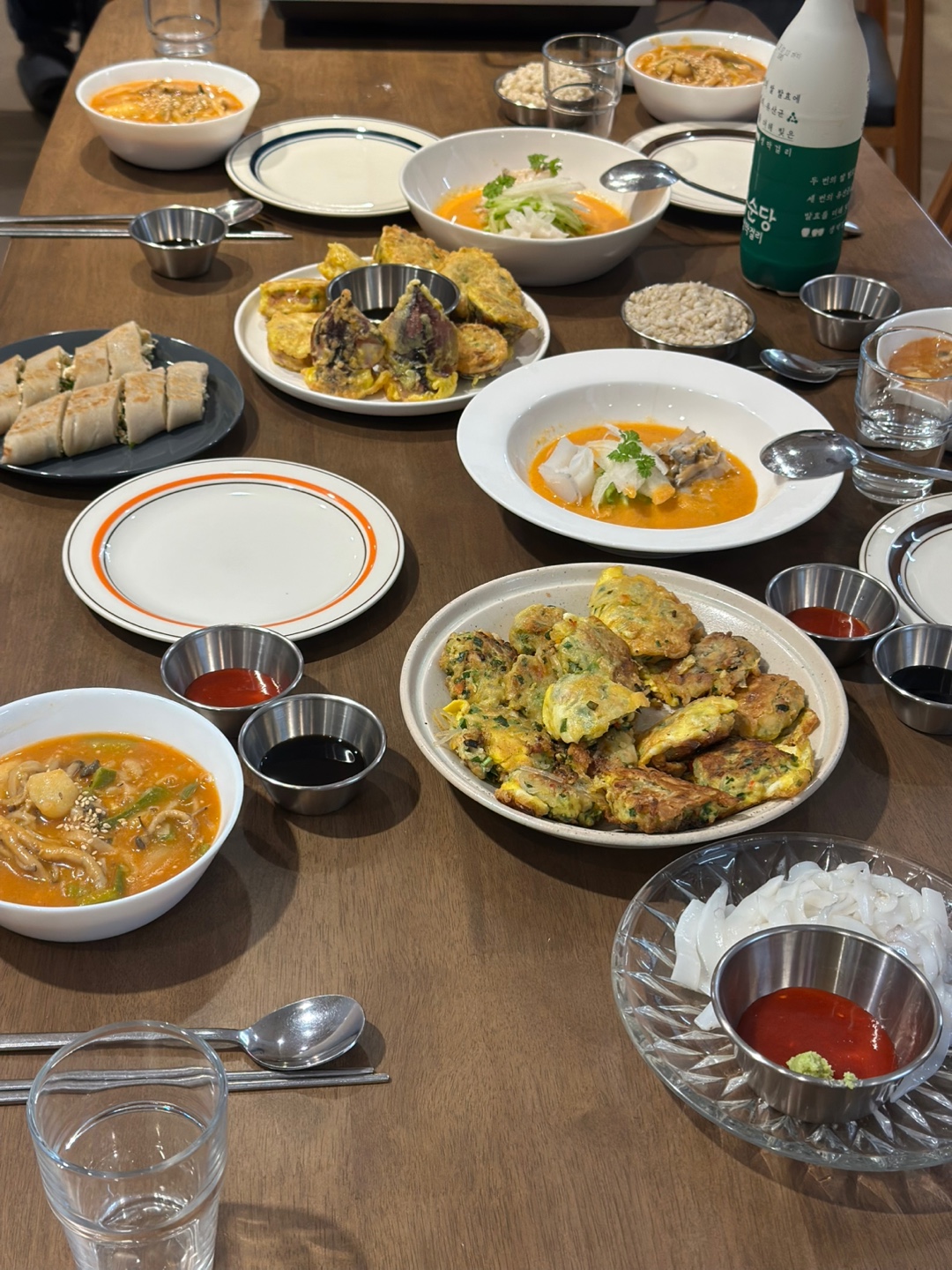 - 섞어 놓은 소를 메밀전에 넣은 후 돌돌 말아줍니다.