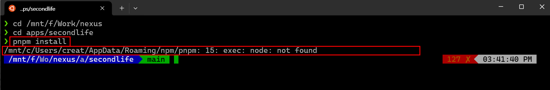 /mnt/c/Users/creat/AppData/Roaming/npm/pnpm: 15: exec: node: not found