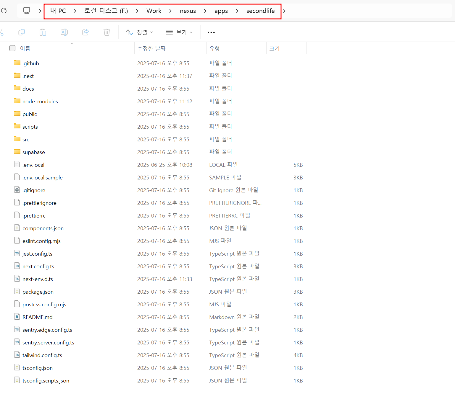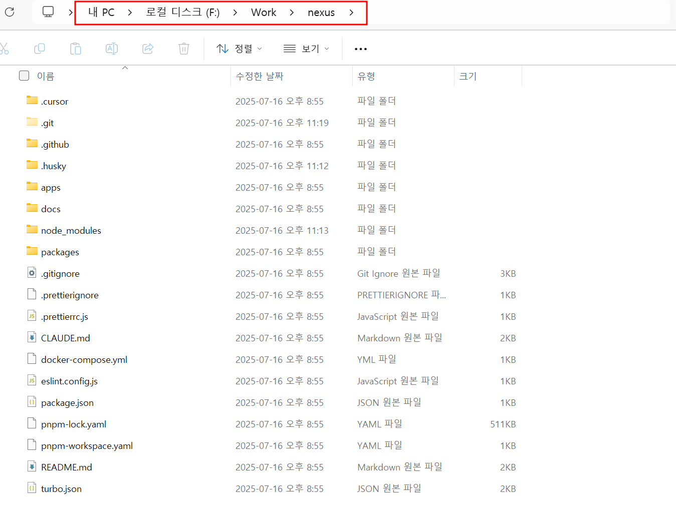 이 경로로 이동하면 nexus 프로젝트 폴더 안으로 들어간 상태가 됩니다.