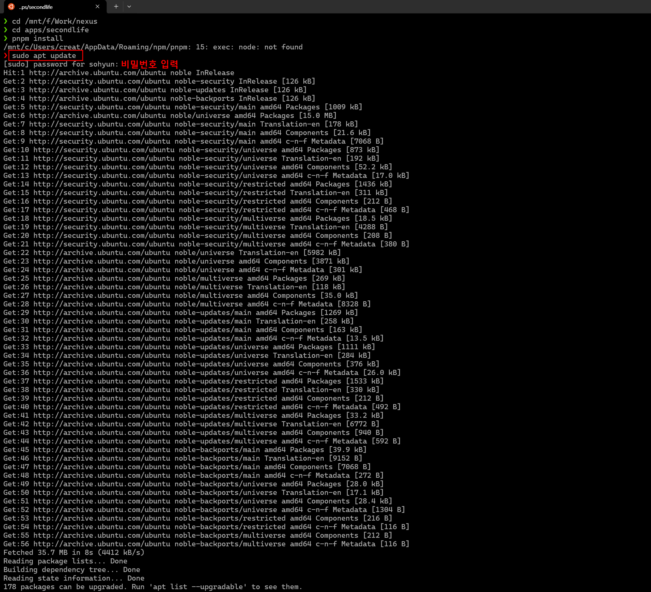 ⚠️ 이와 같은 오류 발생 시 WSL2 안에 Node.js 미설치 발생