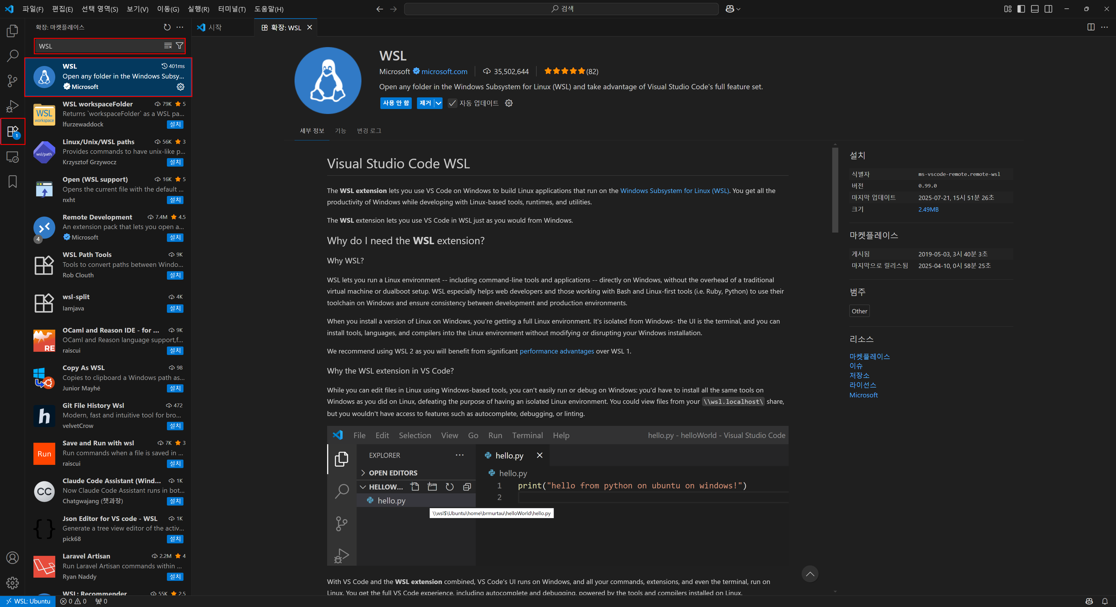 ② VSCode 플러그인에서 WSL 검색해 다운로드 합니다.