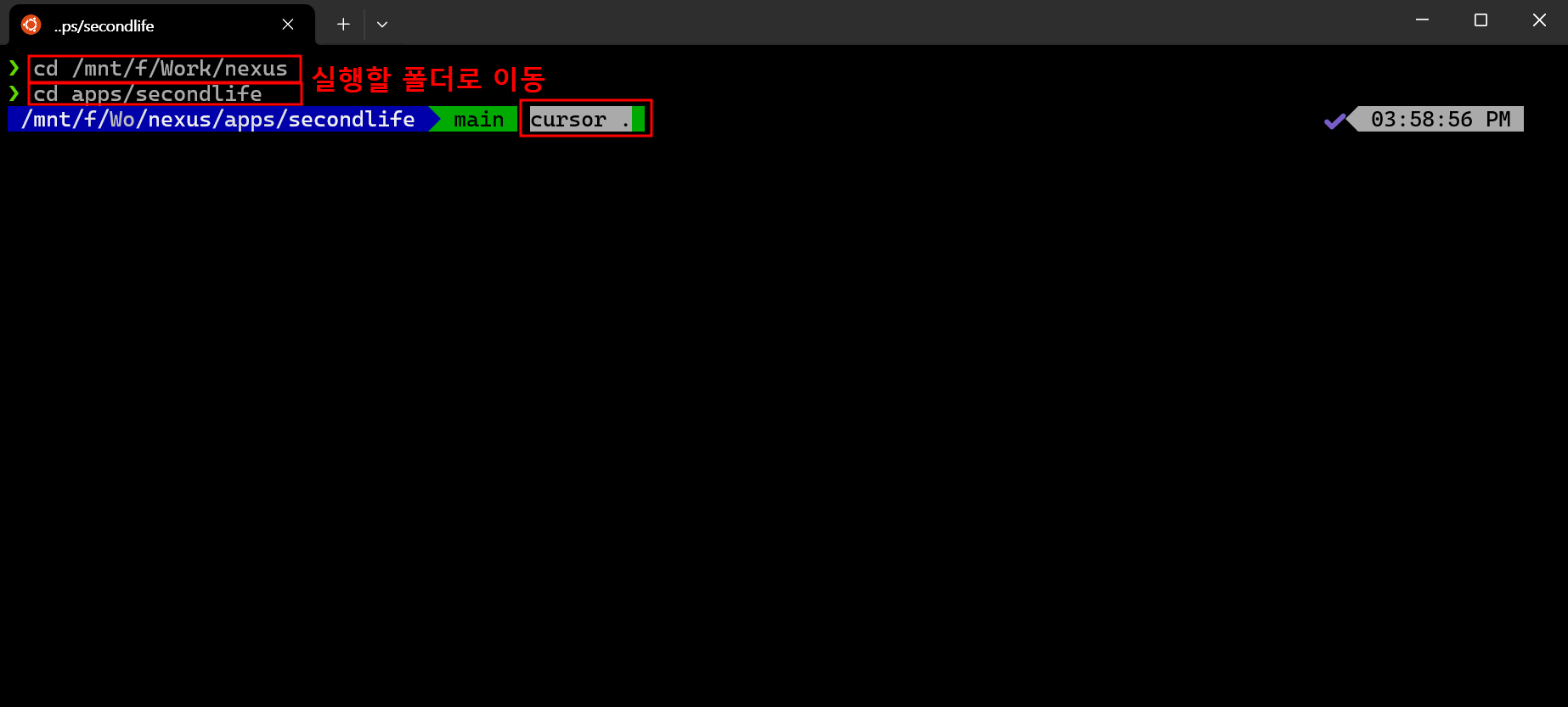 ④ 명령 프롬프트에서 원하는 디렉토리로 이동 후 cursor . 명령어 입력