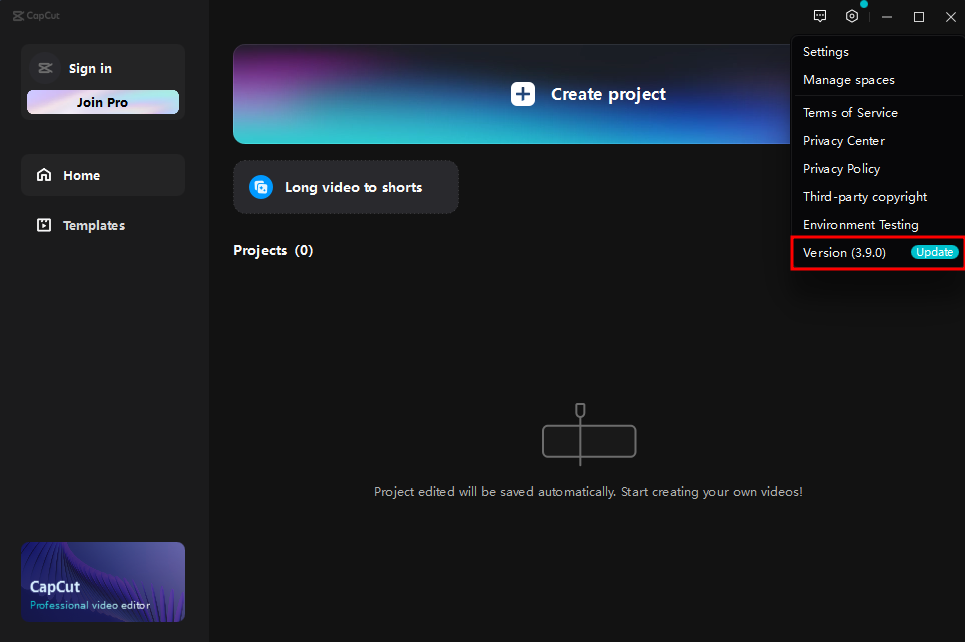 1. 캡컷 설치 ▶ 구버전(3.9.0) 확인