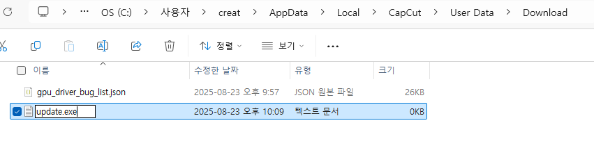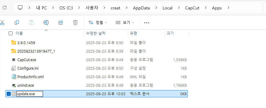 6. 새 텍스트 문서 만들기 ▶ update.exe 파일명 변경
