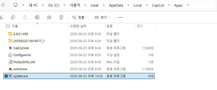 만약 이미 업데이트가 되어버렸었다면 (3.9버전이 아니라면) 캡컷을 삭제하고,