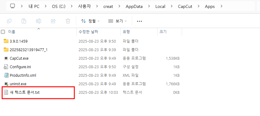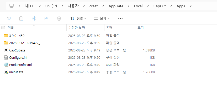 2. 내 PC \ 로얼디스크 C \ Users(또는 사용자) \ User(또는 사용자명) \ AppData \ Local \ CapCut \ apps