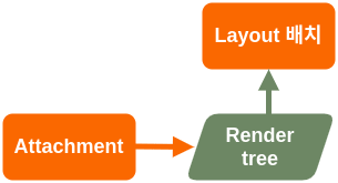 CSSOM 트리와 DOM 트리를 결합하여, 표시해야 할 순서로 내용을 그려낼 수 있도록 하기 위해 렌더 트리를 형성한다. 이 과정을 Attachment라고 한다.
