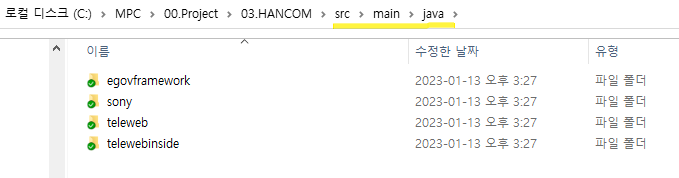 프로젝트 구조 (src소스 > main > java) war 파일을 만들기 위해서 인텔리제이에서 코딩하고