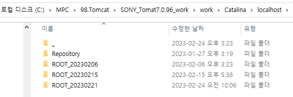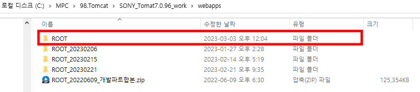 아래 예시 이미지 처럼 백업본을 만들어놓는다. (파일명 : ROOT_오늘날짜)