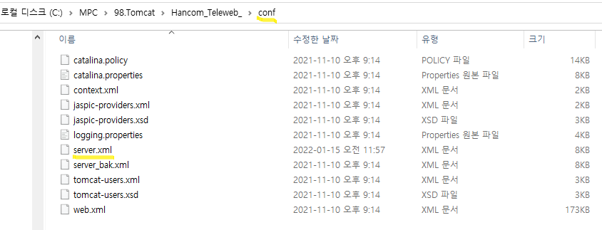 ex) server.xml (톰캣이 구동되는 포트번호)