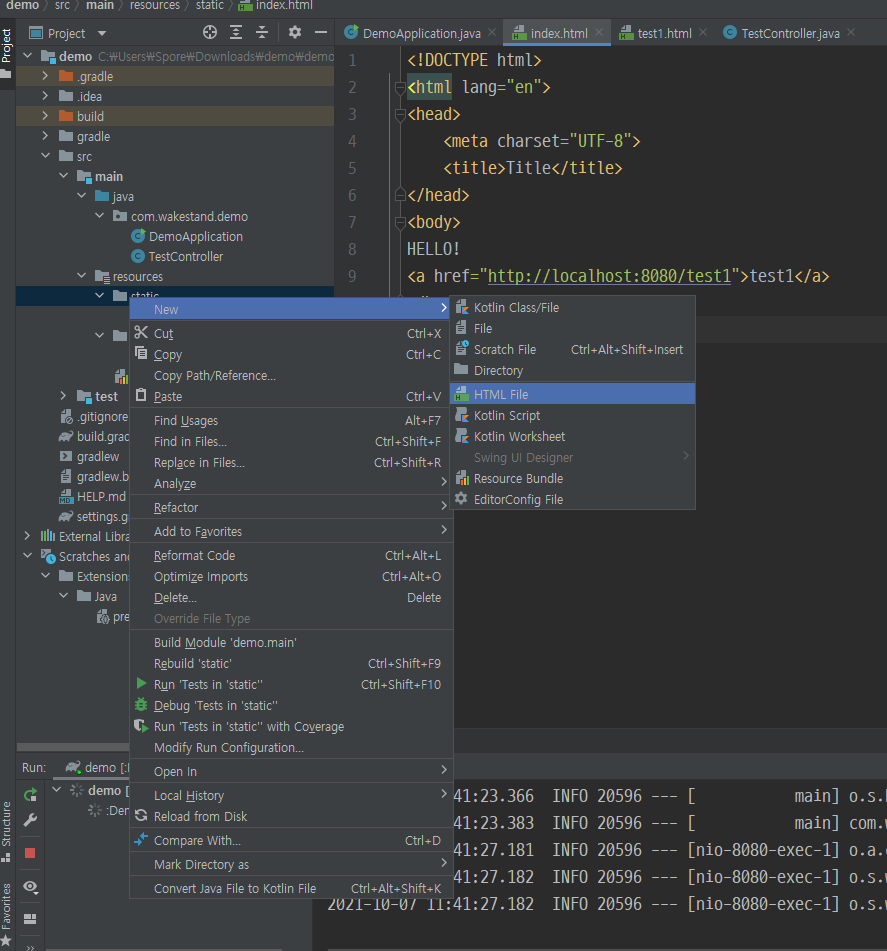src > main > resources > static ▶ index.html 새 파일 생성