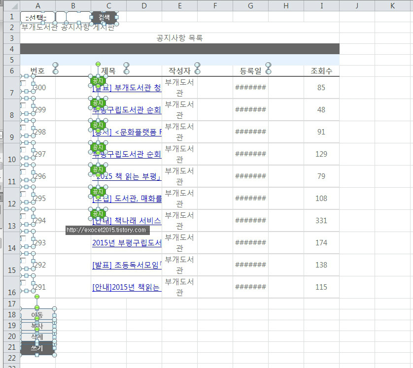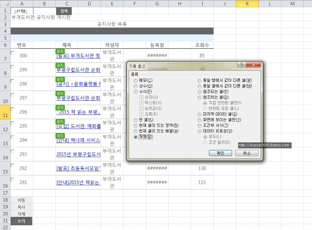 맨 아래쪽의 개체를 체크하고 확인을 누르면 시트 내의 모든 개체가 선택된다.
