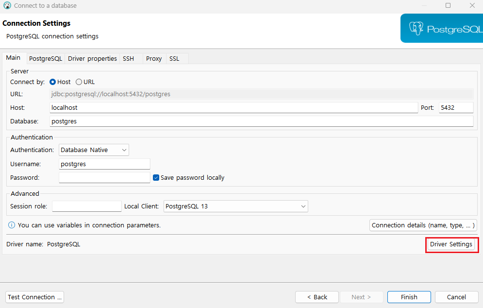 DBeaver 툴 설치 후 Tool 상에서 Postgresql DB 연결을 위해 jdbc 드라이버 설정을 해준다.