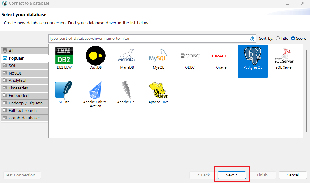 Postgresql DB를 선택한다.