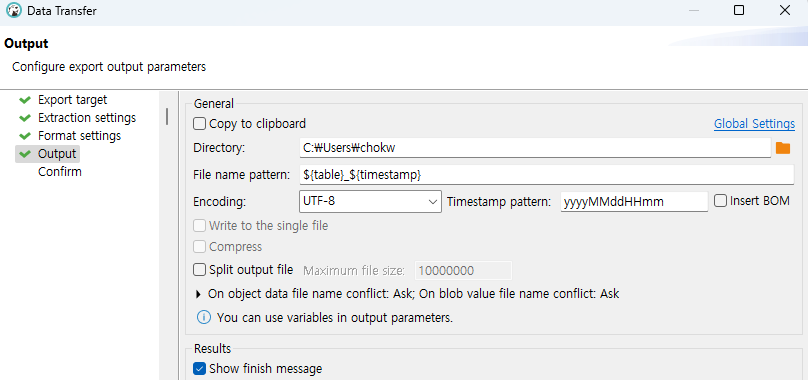 Output은 UTF-8 정도 설정해 주고 다음 단계로 넘어가겠습니다.