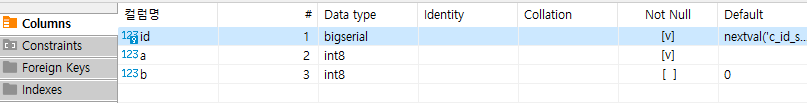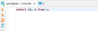 먼저 postgres 데이터베이스에 있는 테이블 c입니다.