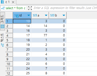 잘 옮겨졌나 확인해 볼까요? id가 13이고 a가 3인 row와 id가 21이고, a가 4인 row가 잘 옮겨졌음을 볼 수 있습니다.