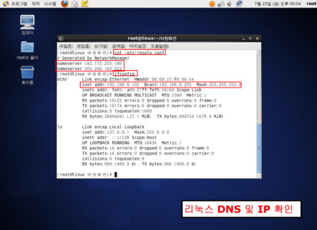 DNS 확인 : cat /etc/resolv.conf