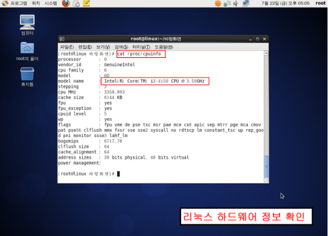 Windows와 같이 GUI 형태의 운영체제에서는 클릭몇번으로 시스템구성장치의 사양에 관련한 정보를 체크하는것이 가능하지만 리눅스 서버 경우에는 명령 프롬프트를 통해 확인되어야 합니다