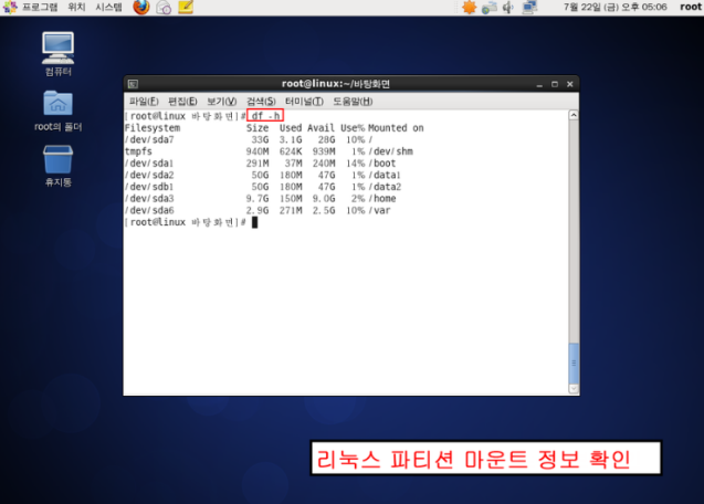 | 파티션 용량 | df -h |