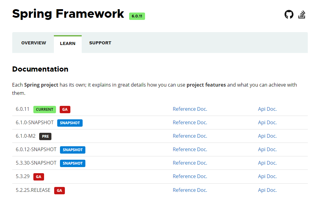 - SNAPSHOT: 아직 릴리즈 되지 않은 데일리 빌드 버전, 안정화 되어 있지 않다.